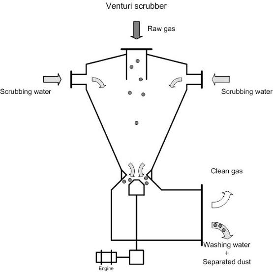 A venturi scrubber is a type of air pollution control equipment that uses the principle of fluid dynamics to remove pollutants from the air stream. It works by using a venturi nozzle, which is a constriction in the shape of an inverted funnel, to increase the velocity of the air stream. This increased velocity causes a drop in pressure, which creates a suction effect that draws in the pollutants.