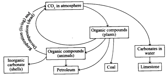 (c) Draw a neat and labeled diagram of global carbon cycle and explain it.